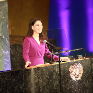 3月9日,在位于纽约的联合国总部,第80届联合国大会主席贝尔伯克在庆祝“三八”国际妇女节活动上发言。