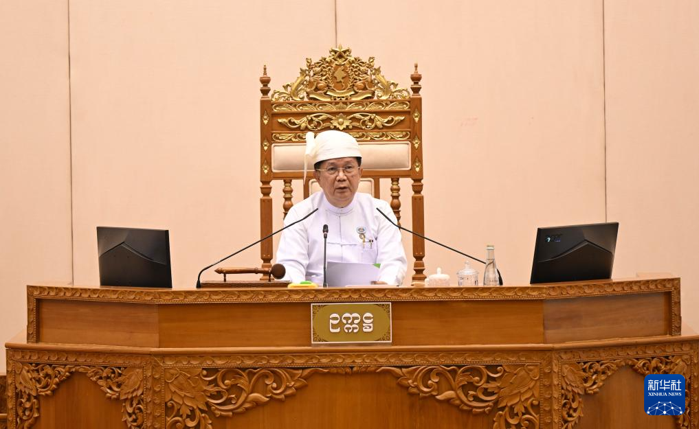 3月18日,在缅甸内比都,昂林兑在第三届民族院(上议院)第一次会议上致辞。