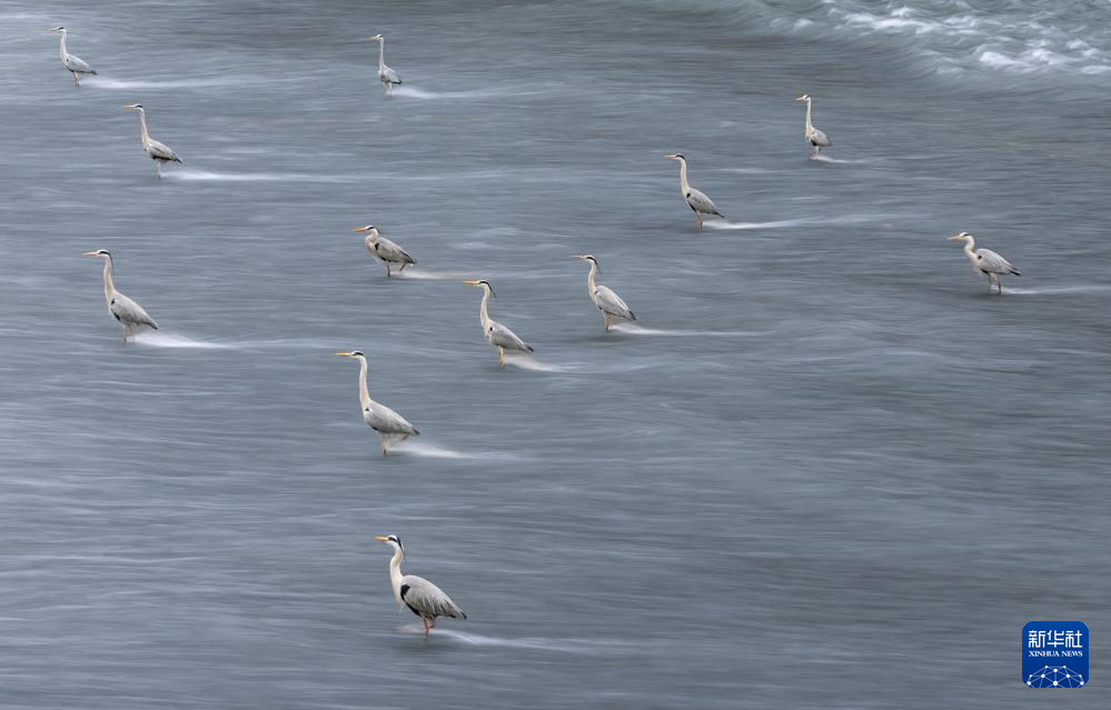 成都:鹭鸟“站桩”捕鱼-新华网