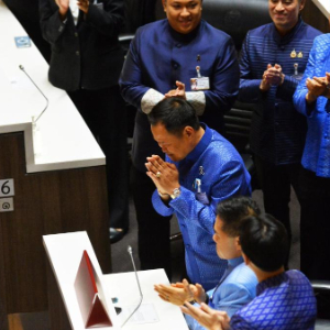 泰国国会下议院19日召开会议选举总理,自豪泰党提名的总理候选人阿努廷·参威拉军获得293票,再次当选泰国总理。