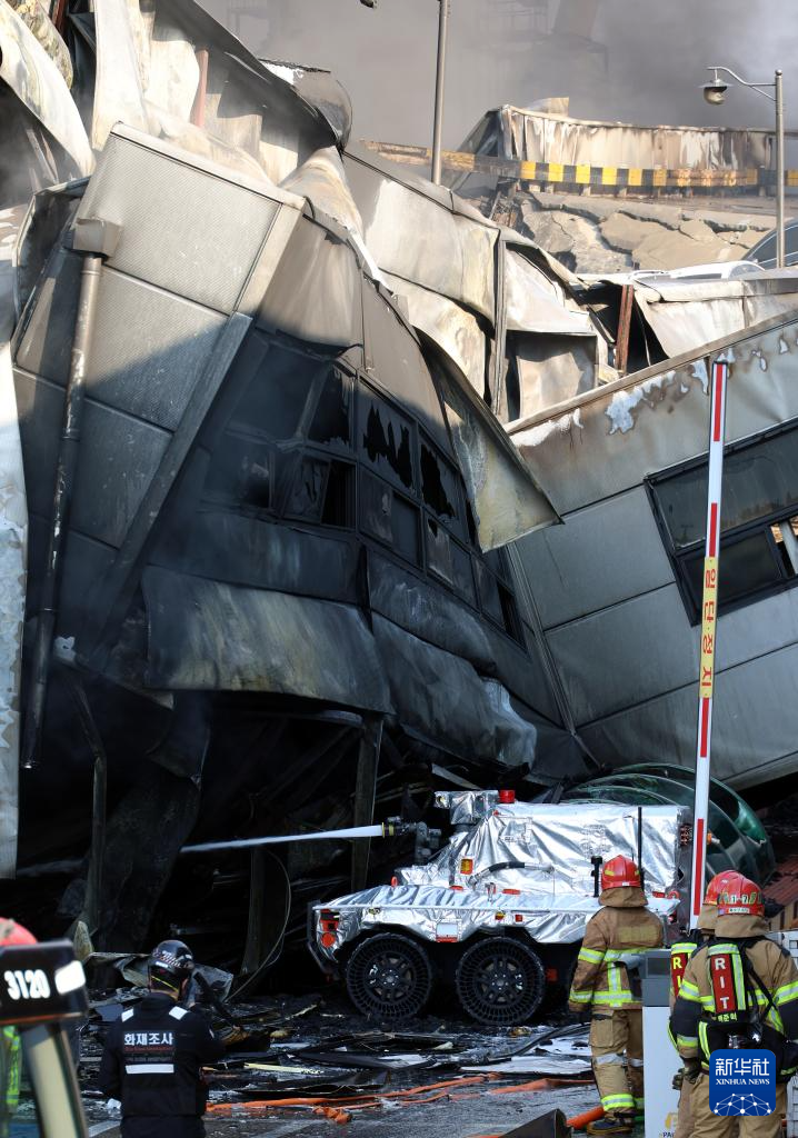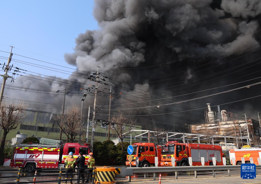 3月20日,救援人员在韩国大田工厂火灾现场实施救援。