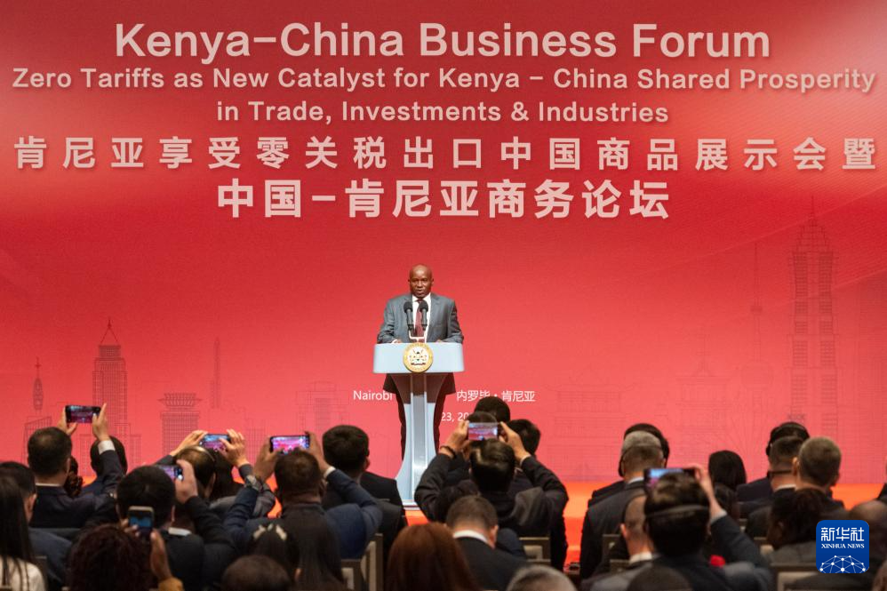 肯尼亚享受零关税出口中国商品展示会暨中国-肯尼亚商务论坛3月23日在肯尼亚内罗毕成功举办。本次活动由中国贸促会和肯尼亚出口促进与品牌推广局共同主办,聚焦中国对非100%税目产品零关税政策,中肯两国政商界代表350余人参加。