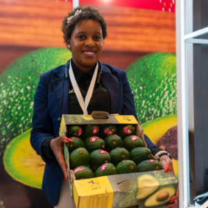 3月23日,商家在肯尼亚内罗毕举办的肯尼亚享受零关税出口中国商品展示会现场展示肯尼亚牛油果。