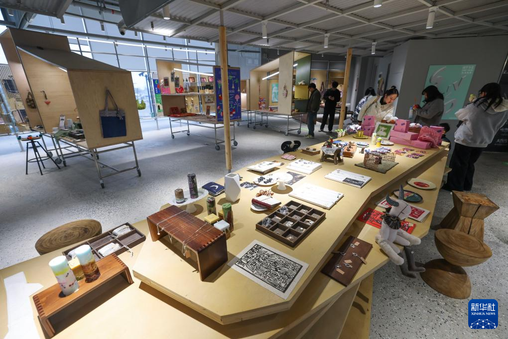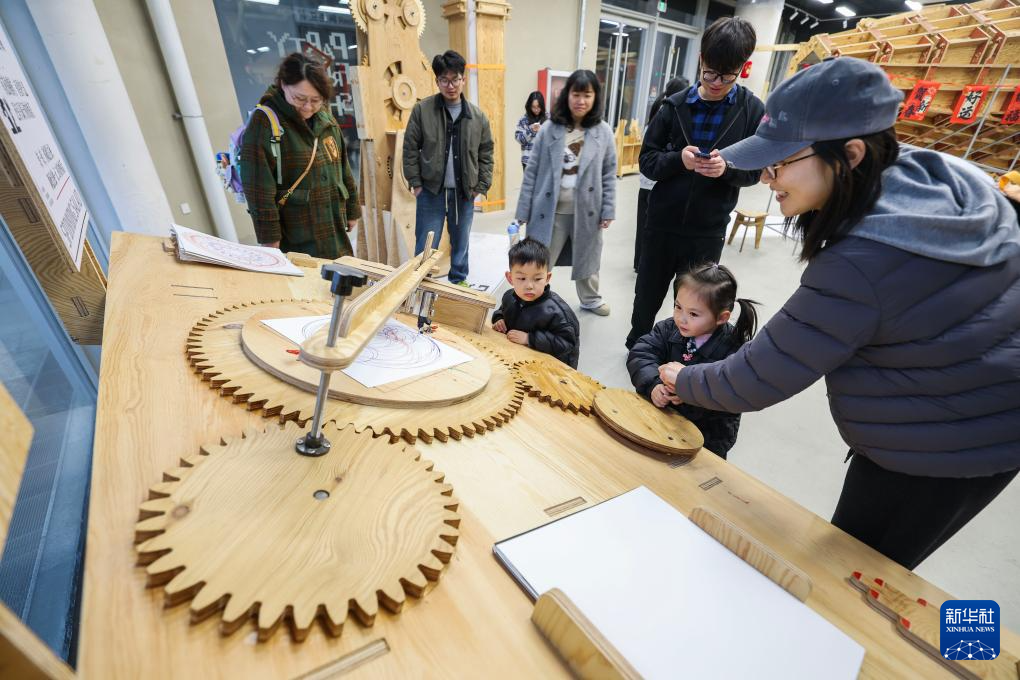 3月24日,游客在嘉兴市南湖区“翼时空·嘉兴1921”的木制手作空间内体验。