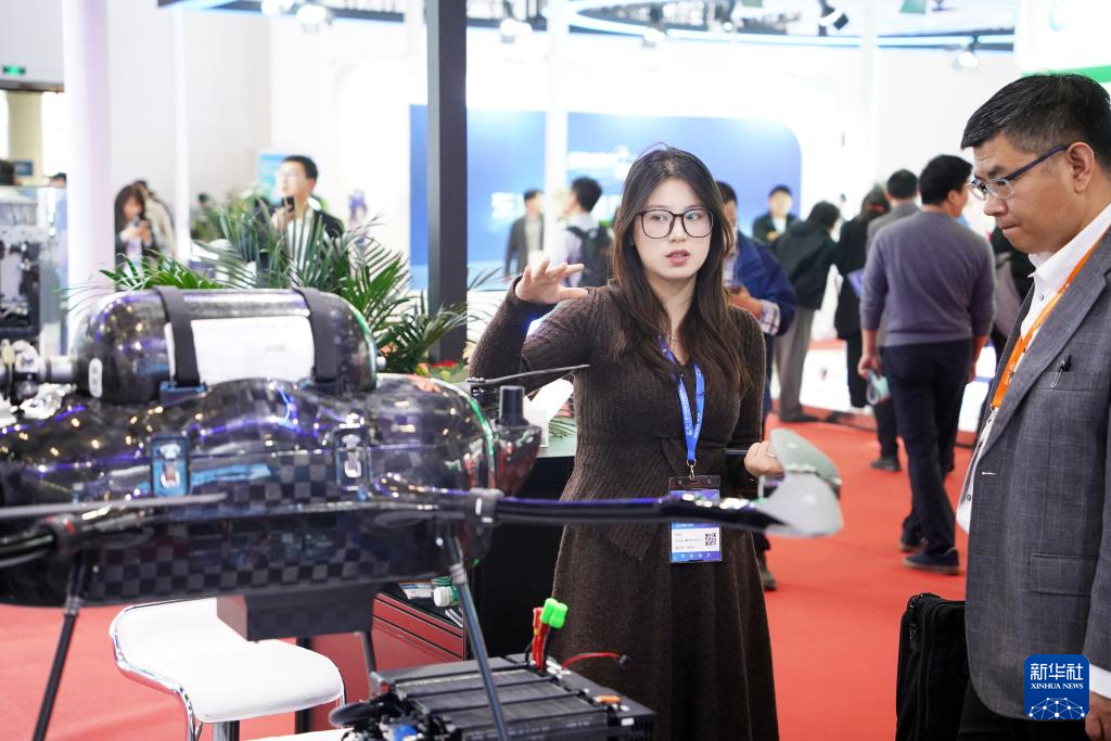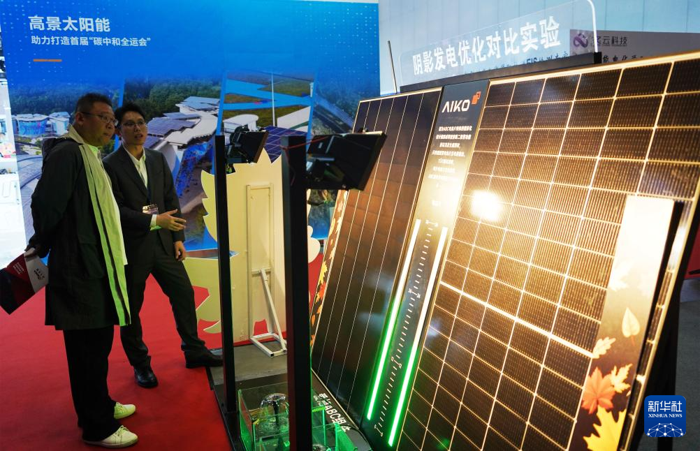 3月26日,工作人员向参观者介绍光伏发电的阴影发电优化对比实验。