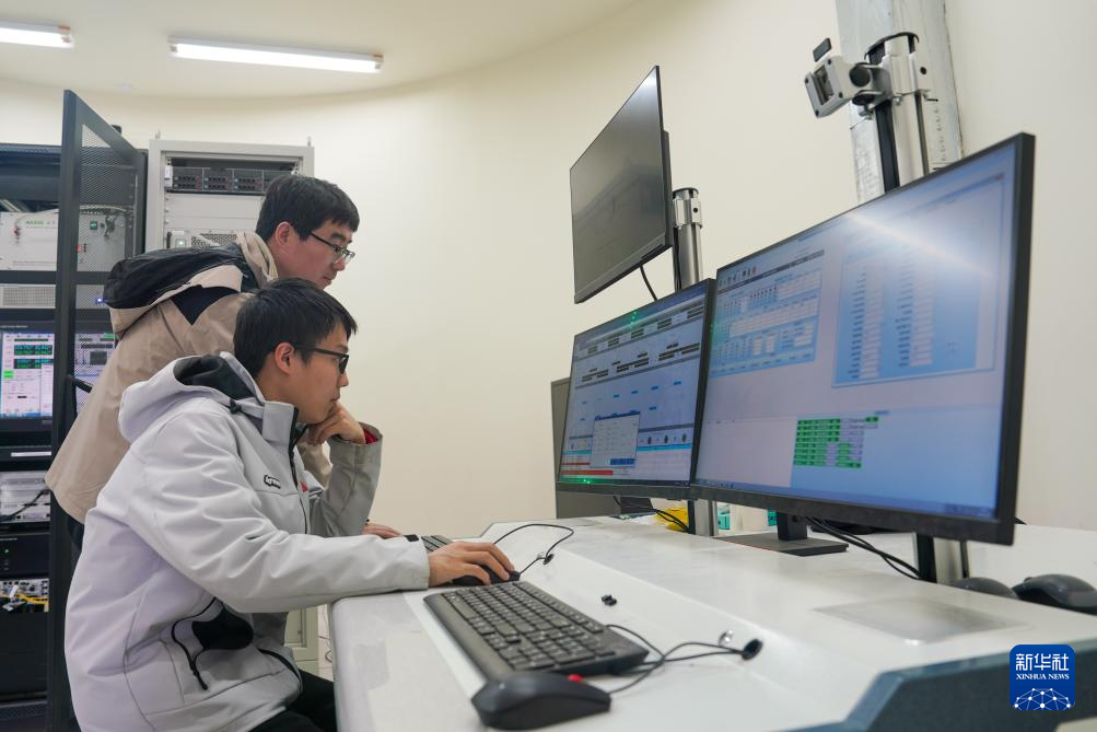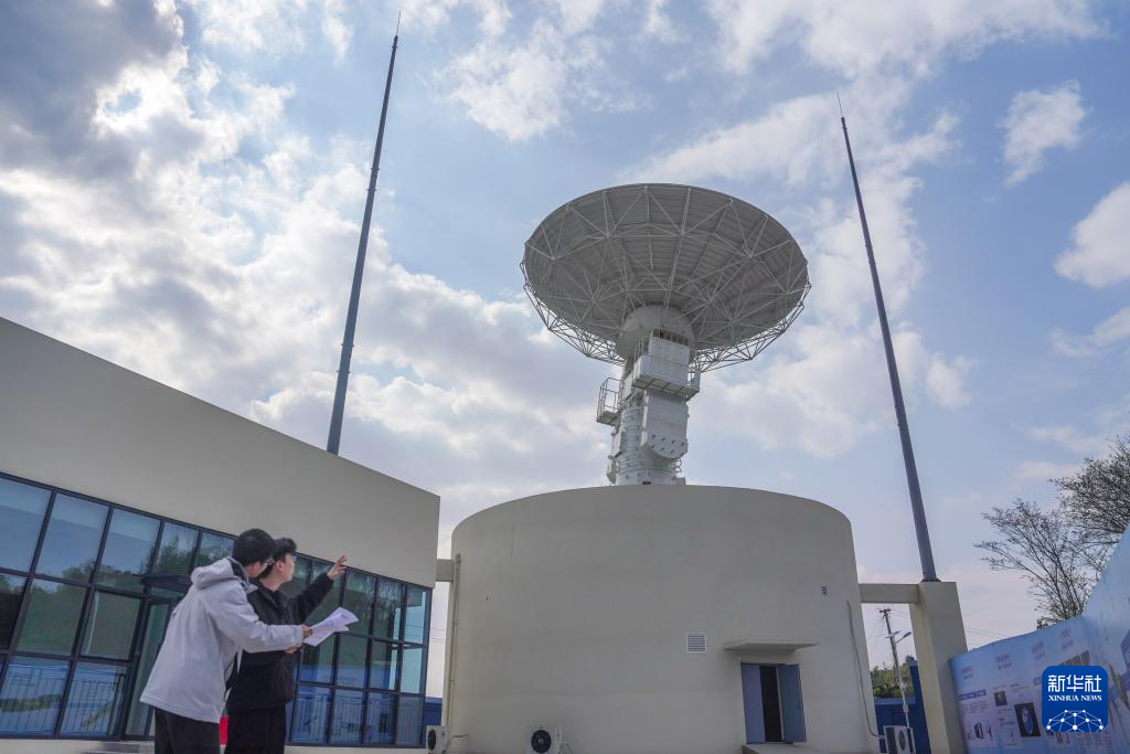 3月27日,技术人员对环天星座卫星地面接收站中心体进行设备调试。