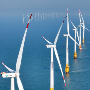 在南通市如东县拍摄的国电投南通新能源有限公司海上风电场(无人机照片,2025年2月9日摄)。