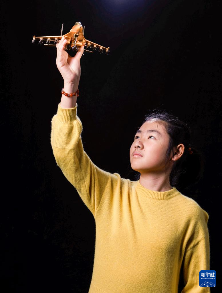 张超的女儿张上明珠手举父亲送给她的战机模型(2026年1月4日摄)。