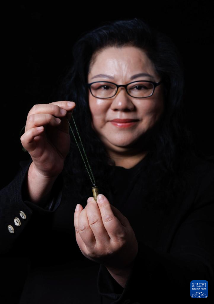 王伟的妻子阮国琴拿着丈夫送她的子弹壳项链,这是婚前王伟为她亲手制作的(2026年1月4日摄)。