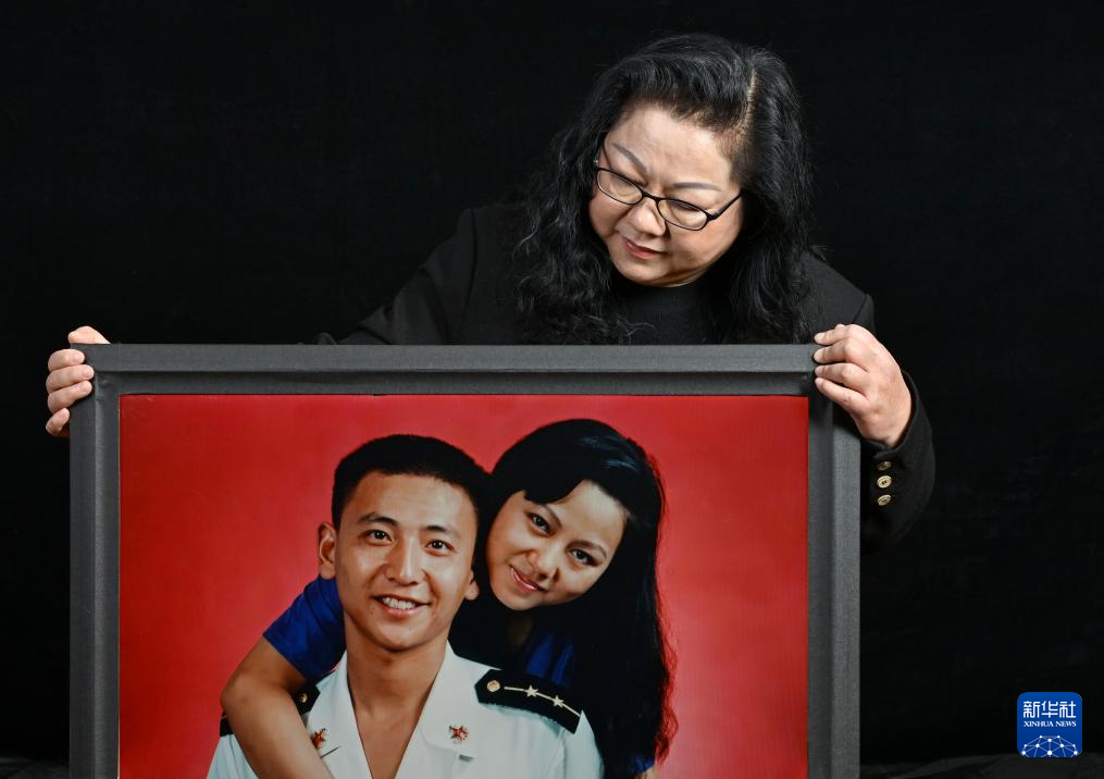 王伟的妻子阮国琴环抱着与丈夫的合影,这张照片是王伟军校毕业分配后首次探亲时拍摄的(2026年1月4日摄)。