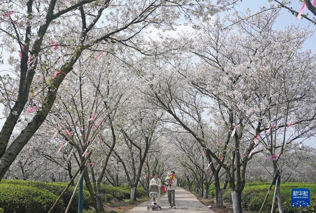 近日,江西省南昌县凤凰沟景区樱花进入盛花期。景区2000余亩樱花谷内,早樱、晚樱、迎春樱等20余个品种樱花次第绽放,春风拂面,花海连片,吸引不少游客前来赏花踏青。