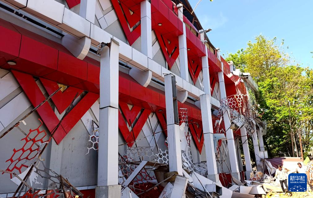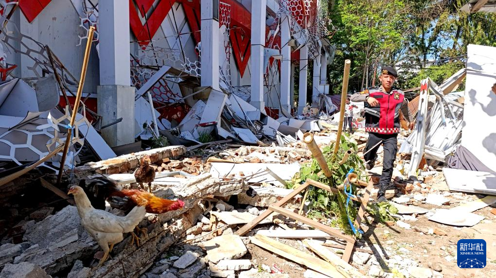 这是4月2日在印度尼西亚北苏拉威西省万鸦老拍摄的一座受损建筑。
