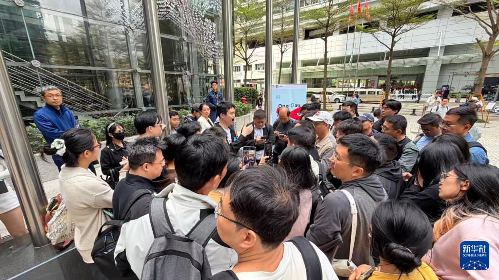 3月6日,人们在深圳腾讯大厦北广场听取工作人员讲解安装“龙虾”的方法。