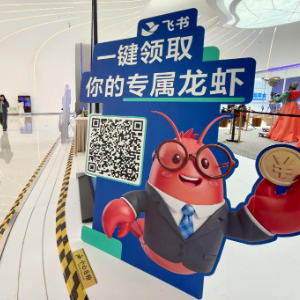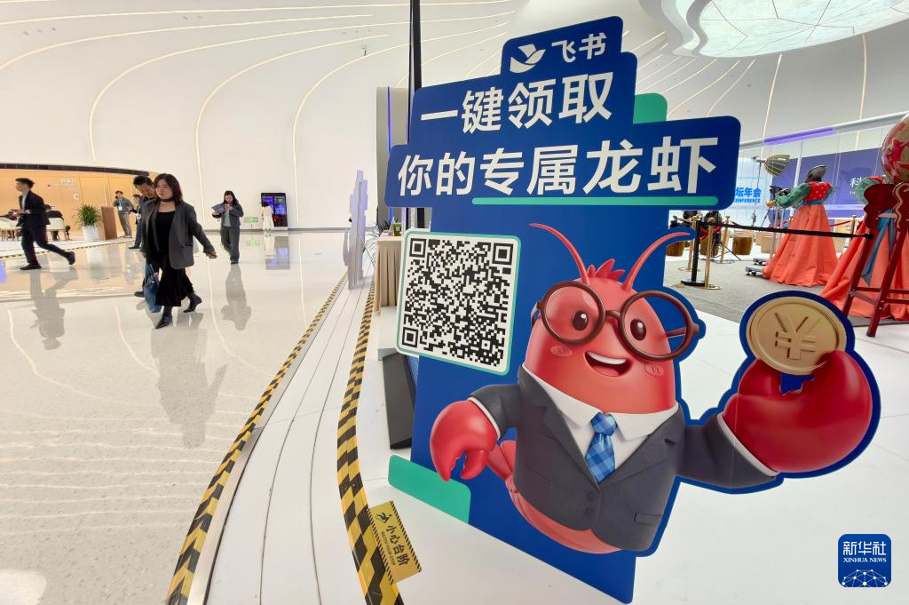 3月27日,在2026中关村论坛年会期间,人们从北京中关村国际创新中心大厅的飞书“龙虾”宣传板旁经过。