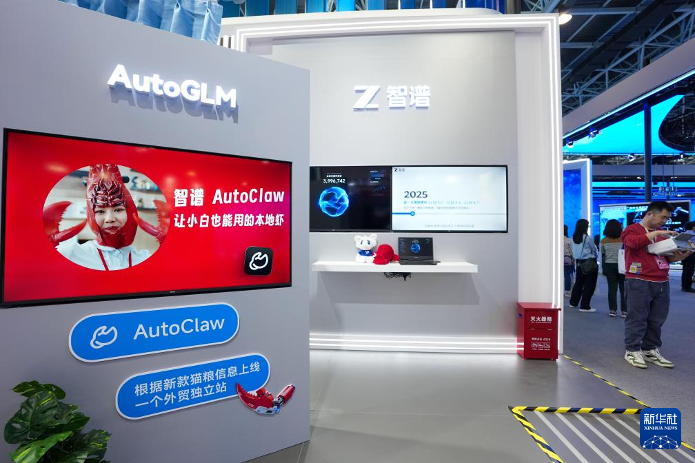 3月25日,在2026中关村论坛年会期间,中关村展示中心常设展智谱公司展台上播放着关于“龙虾”类产品AutoClaw的介绍视频。智谱华章CEO张鹏说:“‘龙虾’提供了一种可能性,很多过去受限于不会写代码、缺乏专业技能而无法实现的想法,现在只需要通过简单交流就有机会实现。”