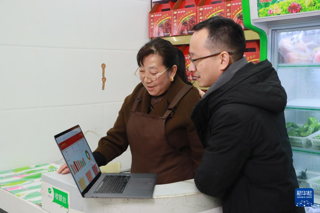 3月18日,在江苏盱眙马坝镇,经营小龙虾餐饮店的戴庆华(左)和儿子一起查看用腾讯AI智能体Workbuddy生成的小龙虾行情报表。戴庆华在儿子的协助下,使用Workbuddy帮她撰写朋友圈营销文案、每日自动生成“店长经营日报”、实时同步江苏小龙虾批发行情等。