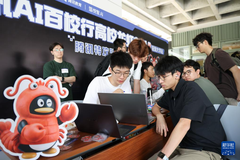 3月19日,学生在“腾讯AI百校行高校龙虾专列”深圳大学站活动现场了解腾讯AI智能体工具Workbuddy。