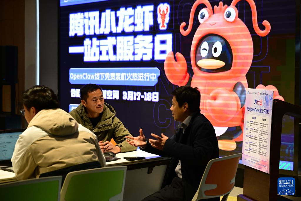 3月21日,人们在深圳市龙岗区机器人街区参加“腾讯轻量云OpenClaw云上部署公益活动”。