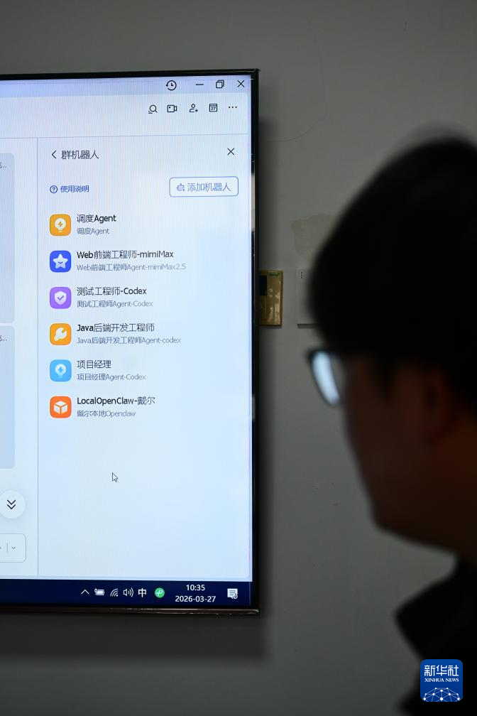 3月27日,在合肥旭冉信息科技有限公司,软件开发工程师展示几只“龙虾机器人”同时工作的界面。