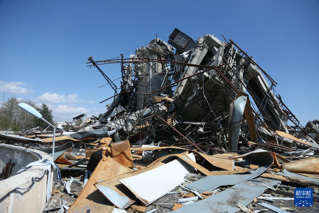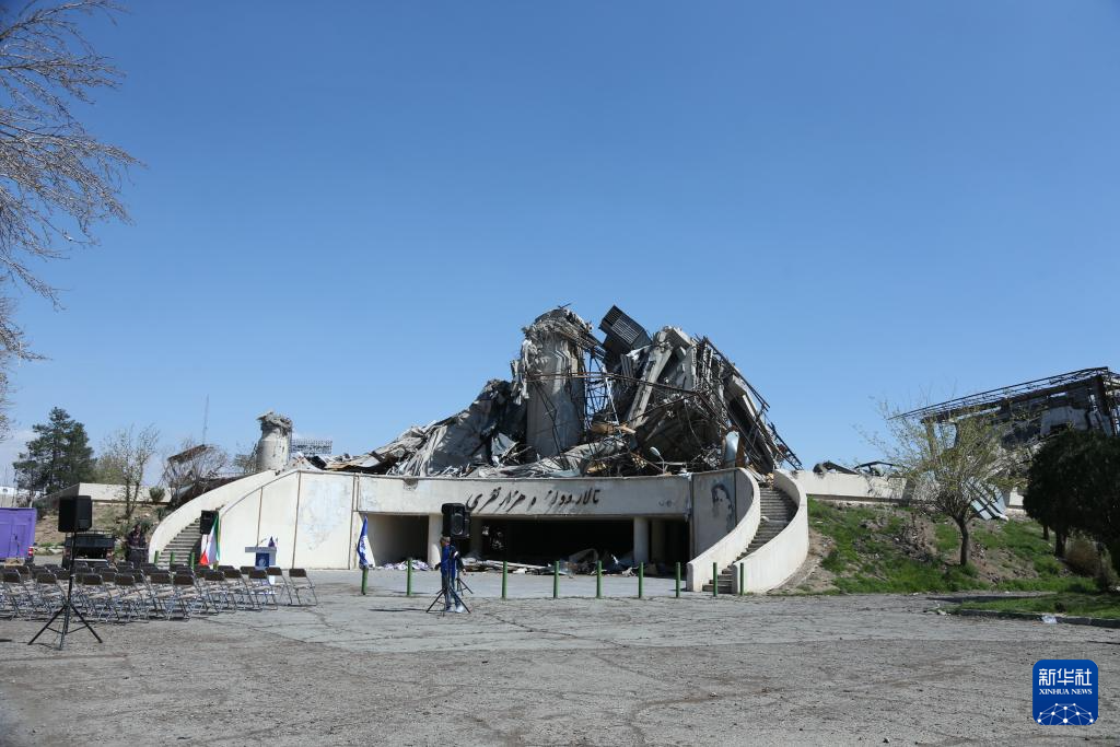 这是4月3日在伊朗首都德黑兰的阿扎迪体育场内拍摄的受损体育馆。