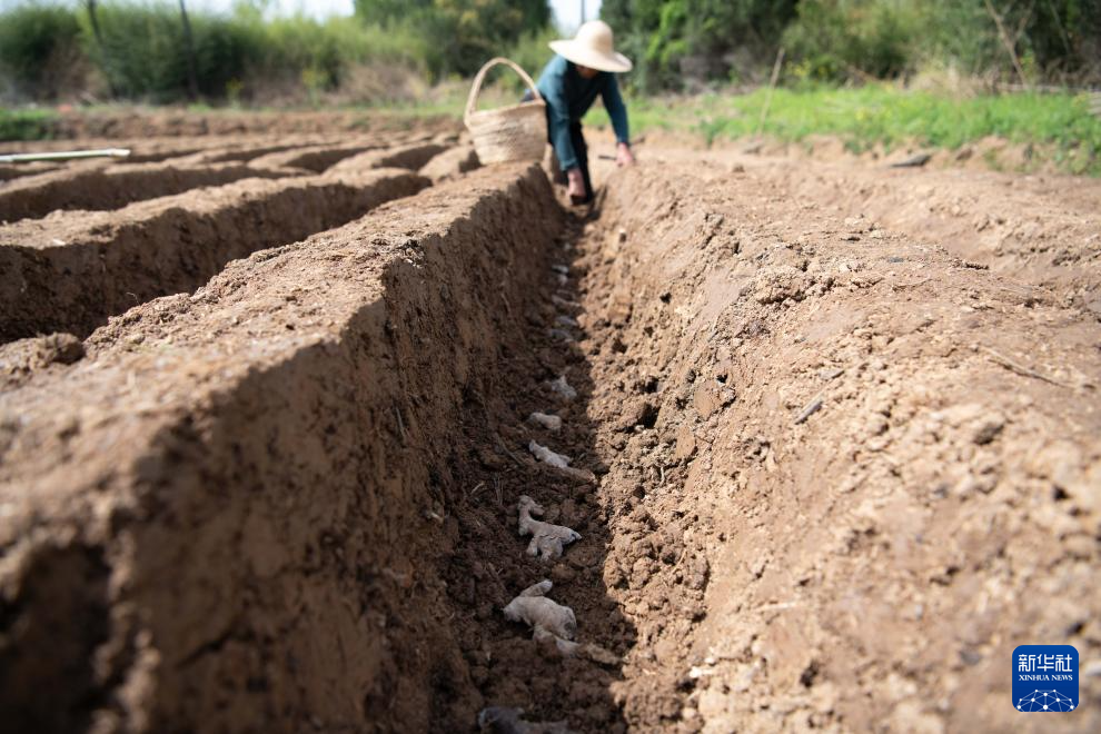 4月5日,在安徽省铜陵市郊区大通镇大院村,农民在种植白姜。