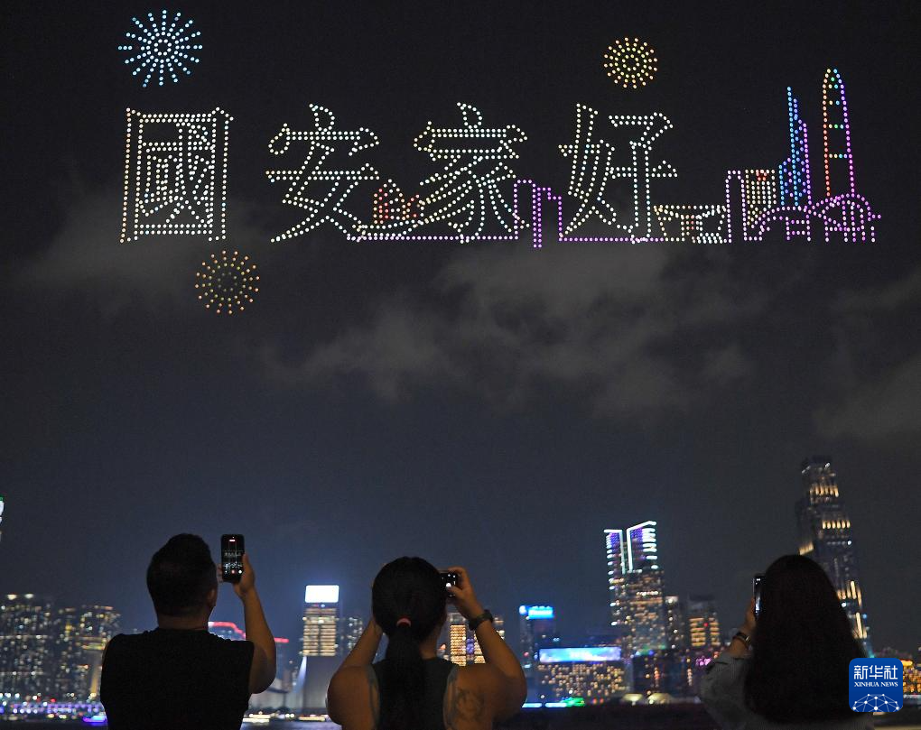 4月15日是第十一个全民国家安全教育日。当晚,由紫荆文化集团主办、紫荆杂志社承办的大型主题无人机表演亮相香港。