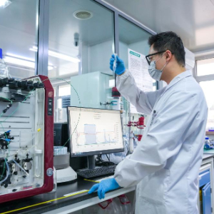 4月15日,在中国农业科学院兰州兽医研究所口蹄疫与新发病流行病学团队实验室,科研人员在进行蛋白纯化作业。