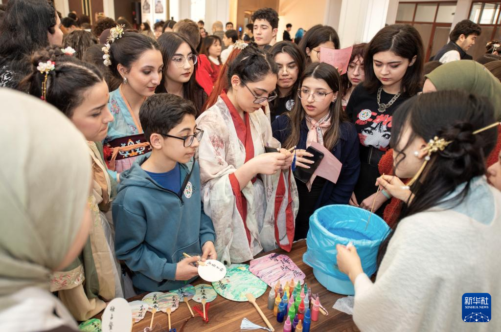 4月20日,在阿塞拜疆首都巴库,人们参加“国际中文日”庆祝活动。