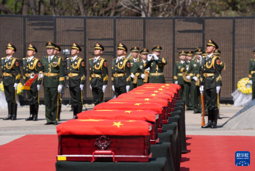 4月23日,第十三批在韩中国人民志愿军烈士遗骸安葬仪式在沈阳抗美援朝烈士陵园举行。12位志愿军烈士英灵在阔别祖国70多年后回到中华大地安息。