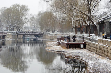 这是3月5日拍摄的北京市东城区玉河雪景。
