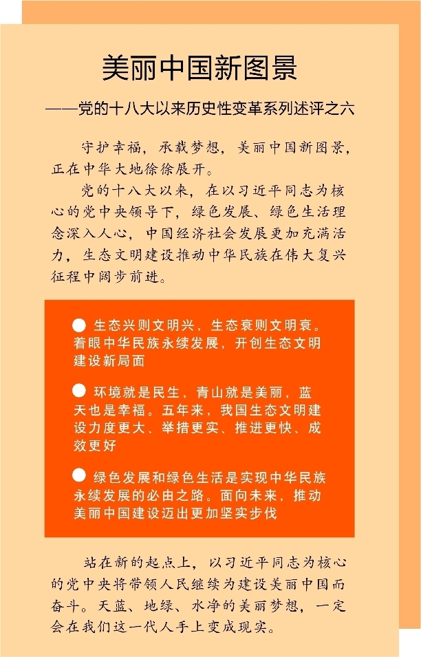 新华社北京10月14日电 题:美丽中国新图景——党的十八大以来历史性变革系列述评之六