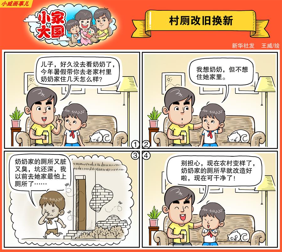 漫画:小家大国之村厕改旧换新 新华社发 王威 作