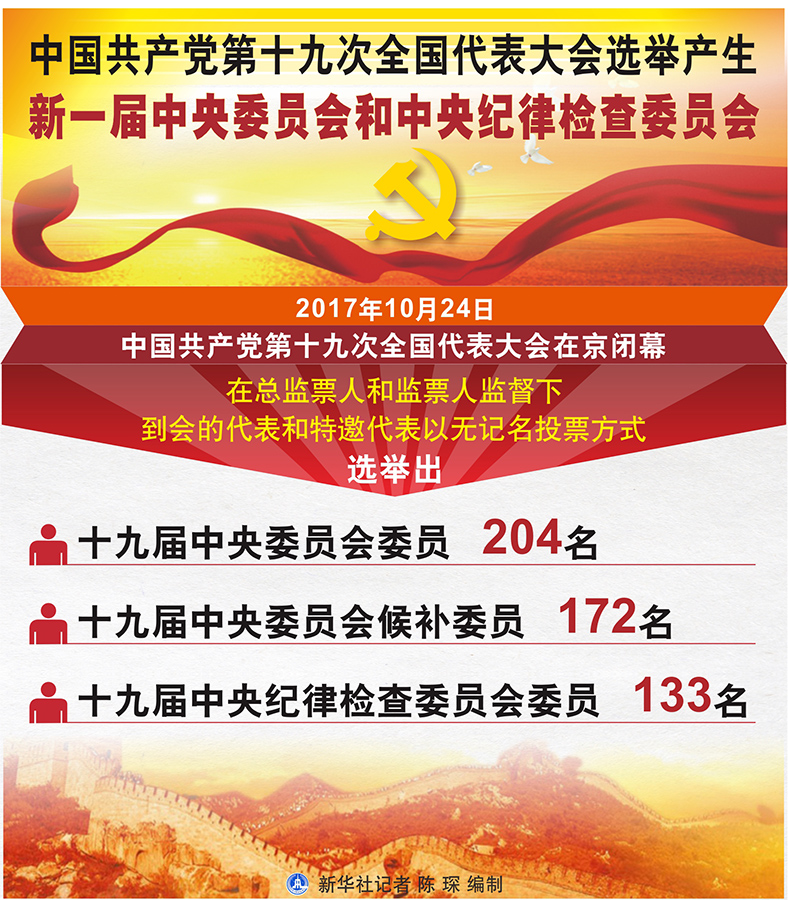 中国共产党第十九次全国代表大会选举产生新一届中央委员会和中央纪律检查委员会-新华网