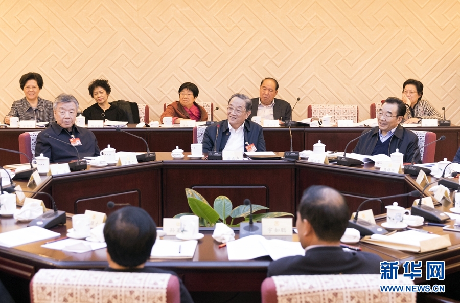 10月30日,政协第十二届全国委员会常务委员会第二十三次会议举行分组讨论,与会人员围绕深入学习贯彻中共十九大精神认真讨论,积极建言献策。全国政协主席俞正声参加讨论。新华社记者 丁海涛 摄