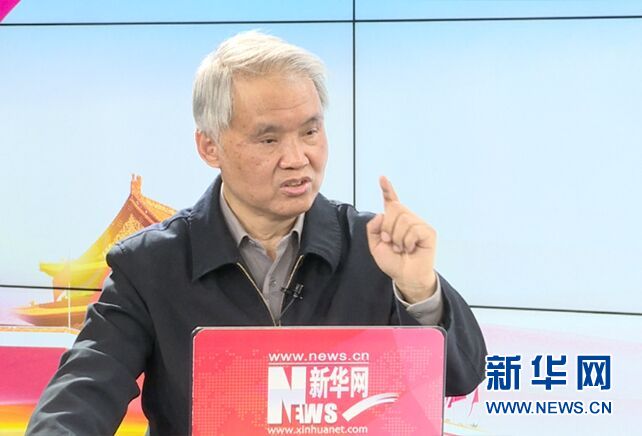 图为新华网十九大特别访谈现场,新华网总编辑郭奔胜对话中共中央党史研究室原副主任李忠杰,深度解读新修改的党章。新华网 郭小天 摄