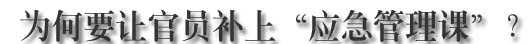 我国目前正处于社会转型和体制转轨双重过渡期,不论自然灾害、公共卫生,还是社会突发事件,都是政府和社会应急管理系统要直面的问题。 从应急办到应急管理培训基地,官员们能否上好这“急补的一堂课”,我们拭目以待,但官员们首先面对的将是理念机制体制方面的挑战。