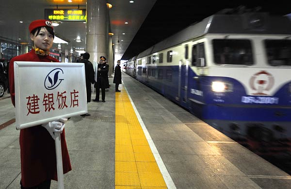 3月1日,内蒙古自治区出席全国政协十一届四次会议的全国政协委员乘坐K90次列车抵达北京西站。