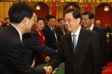 党和国家领导人胡锦涛、吴邦国、贾庆林、李长春、习近平5日下午分别来到各自所在的十一届全国人大五次会议江苏、安徽、北京、四川、上海代表团,同代表们一起审议。
