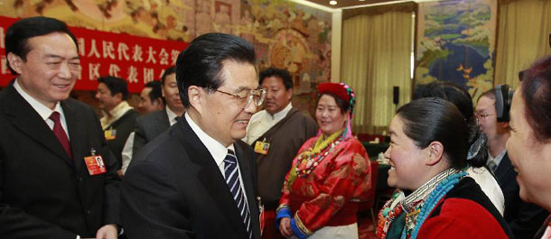 胡锦涛参加西藏代表团审议