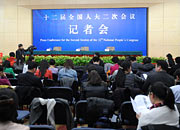 十二届全国人大二次会议新闻中心在梅地亚举行首场记者会