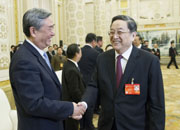 俞正声亲切看望参加两会报道的新闻工作者