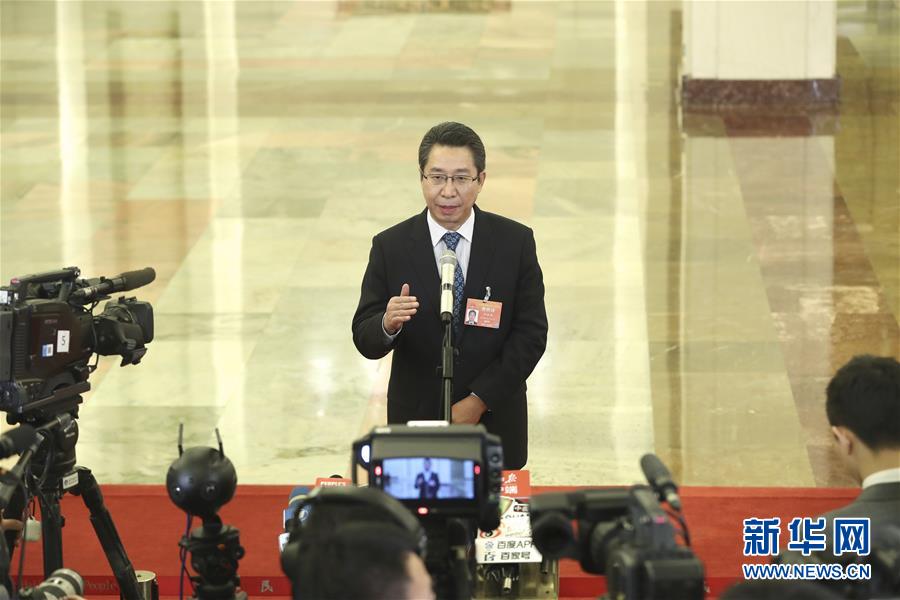 3月12日,十三届全国人大二次会议在北京人民大会堂举行第三次全体会议。这是国家知识产权局局长申长雨在“部长通道”接受采访。 新华社记者殷刚摄