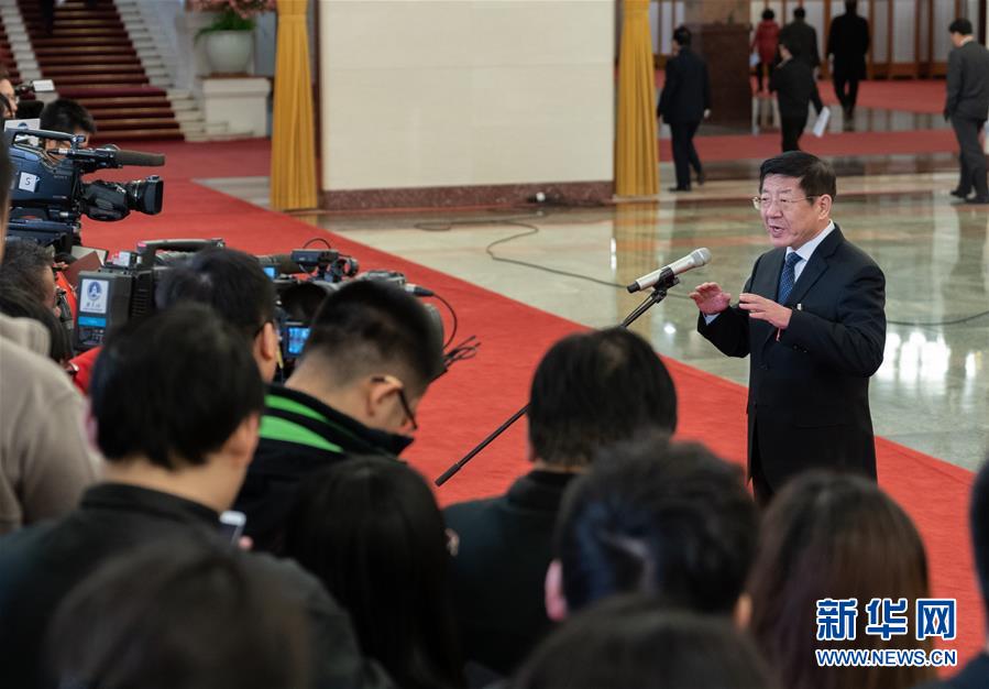 3月12日,十三届全国人大二次会议在北京人民大会堂举行第三次全体会议。这是国家林业和草原局局长张建龙在“部长通道”接受采访。 新华社记者毕晓洋摄