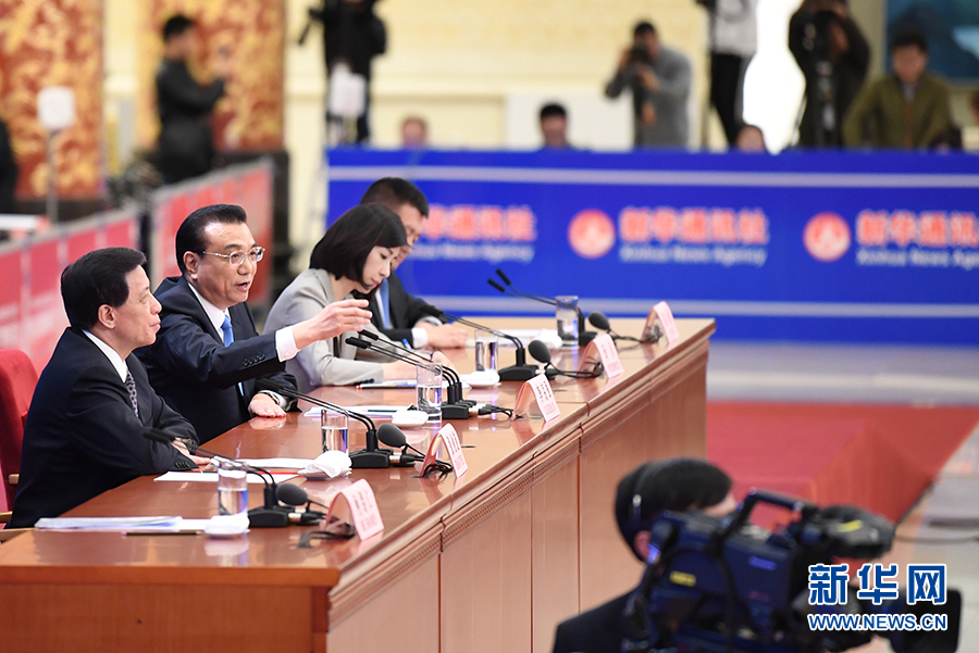3月15日,国务院总理李克强在北京人民大会堂会见采访十三届全国人大二次会议的中外记者并答记者问。 新华社记者 殷博古 摄