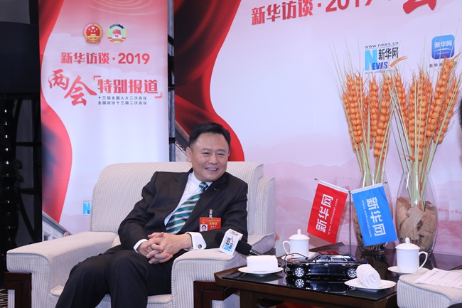 3月12日,全国人大代表、中国第一汽车集团有限公司党委书记、董事长徐留平做客新华网2019全国两会特别报道。新华网 赵延心 摄