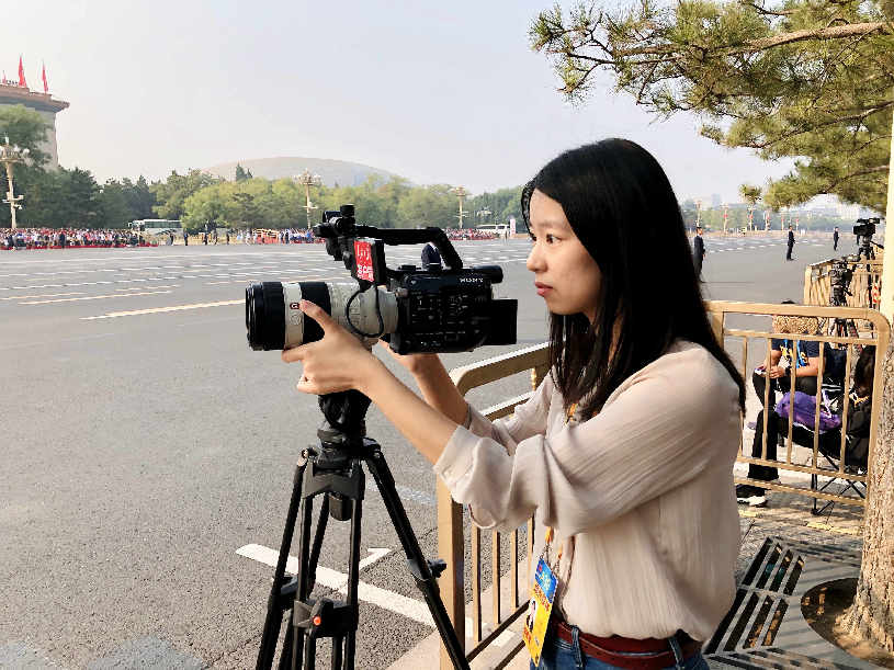2019年10月1日,在庆祝中华人民共和国成立70周年大会现场采访报道。