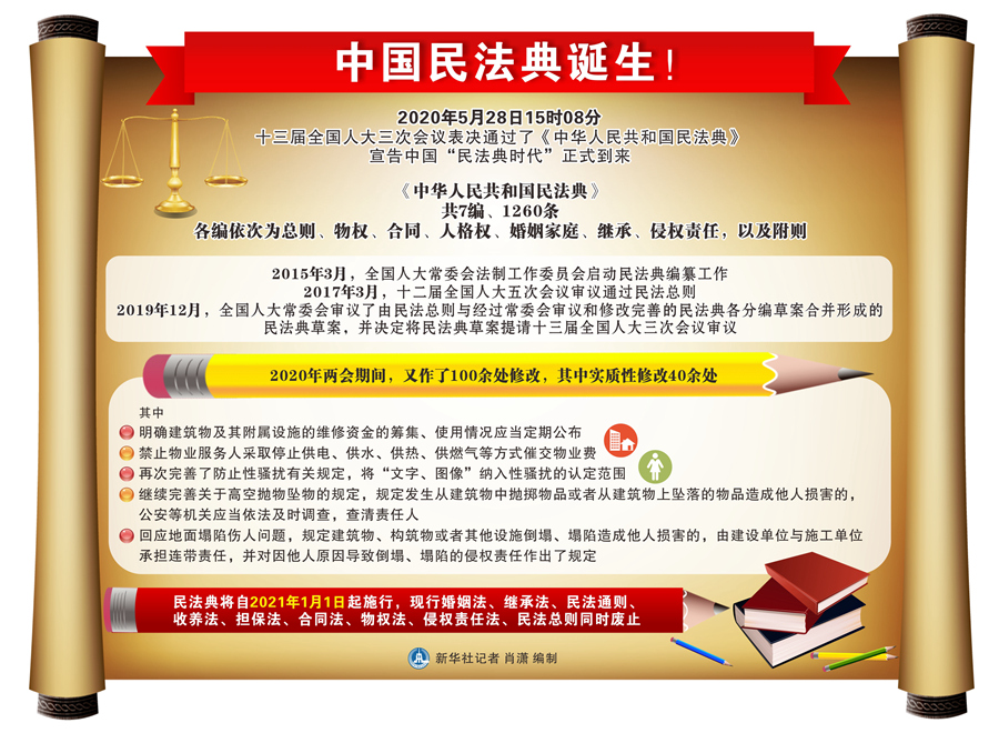 新华社北京5月28日电(记者罗沙、杨维汉)“通过!”2020年5月28日15时08分,十三届全国人大三次会议表决通过了《中华人民共和国民法典》,宣告中国“民法典时代”正式到来。