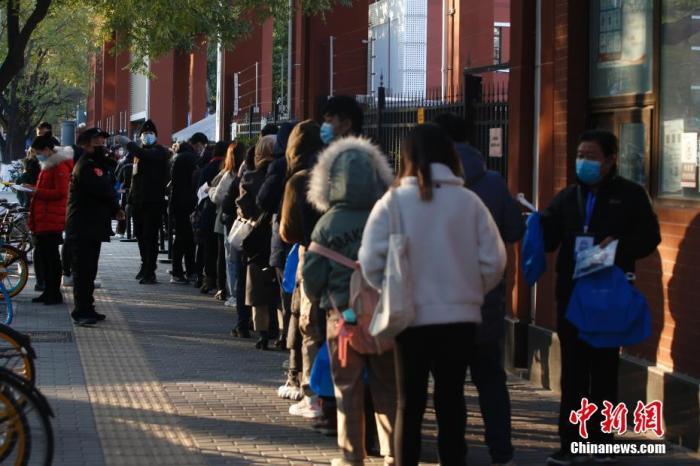 资料图:2020年11月29日,北京市东城区一处国考考点外,考生排队等候入场。中新社记者 蒋启明 摄
