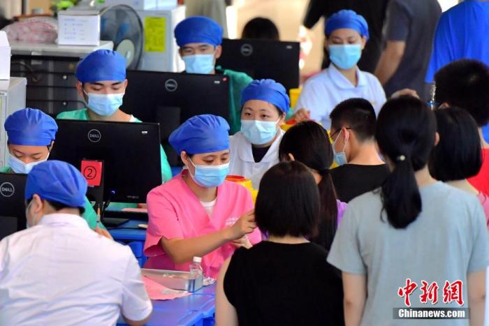 资料图:福建省福州第四十中学金山分校疫苗接种点,医务人员为学生接种新冠疫苗。张斌 摄