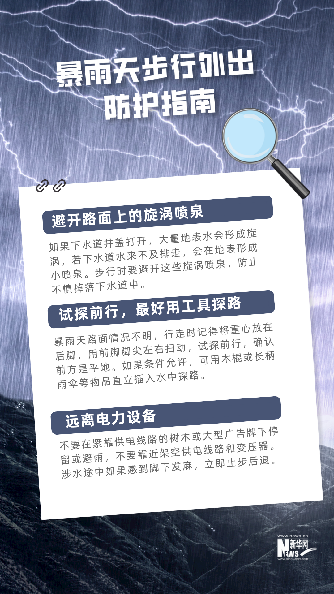 暴雨天如果必须步行外出,要注意以下几条↓↓↓